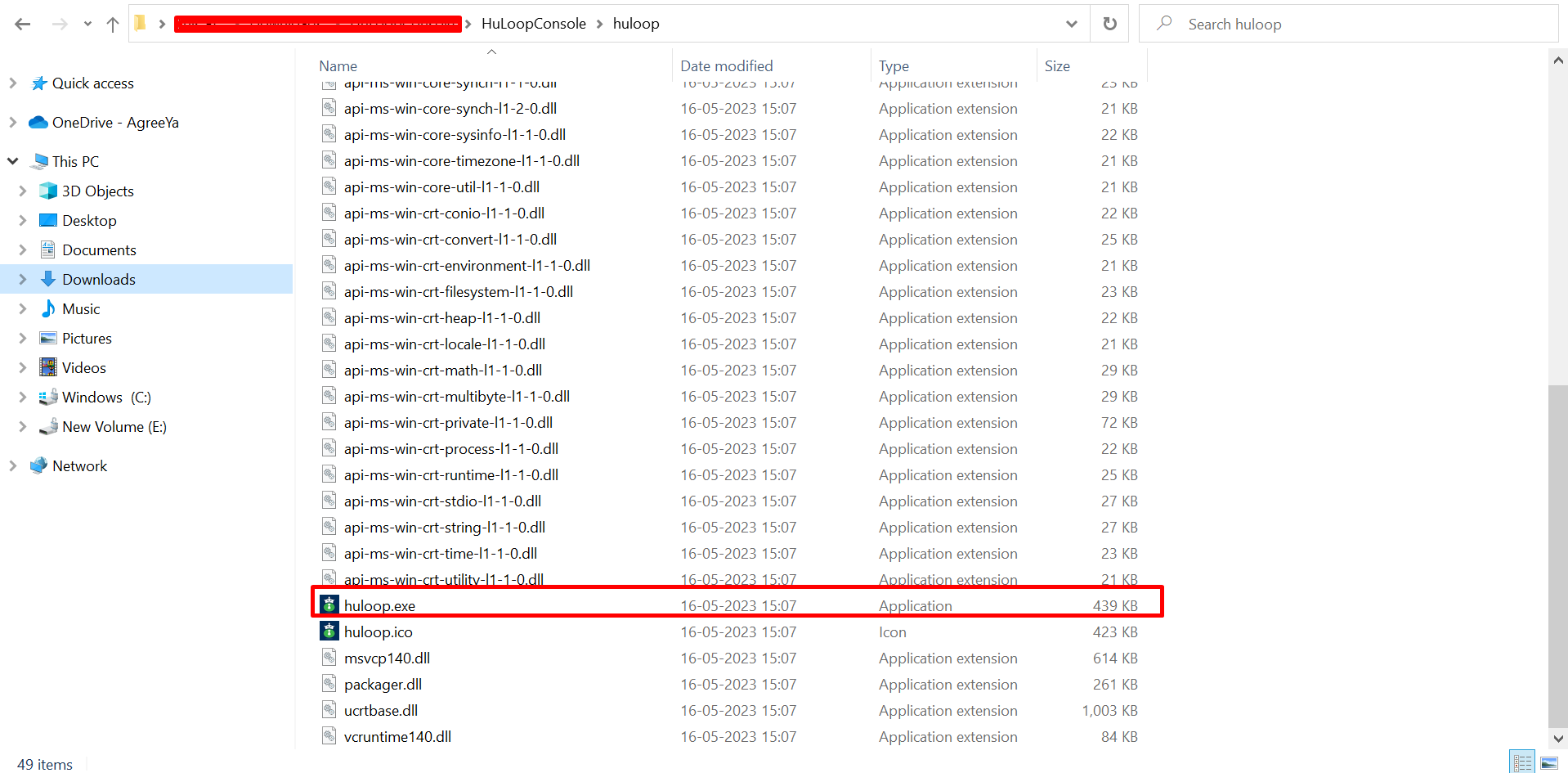 Once the download is complete, unzip the zipped folder. You will find huloop.exe by navigating to HuLoopConsole\huloop\huloop.exe
