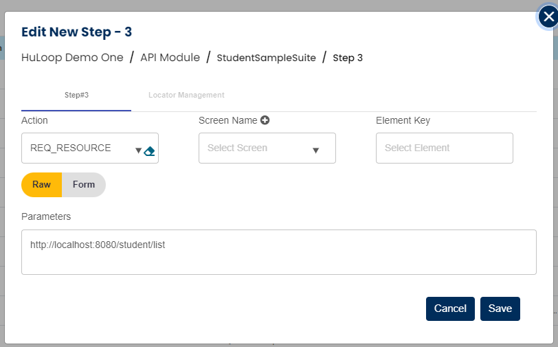 Select REQ_RESOURCE command from the action drop down. Leave Screen, Element key as blank and pass the resource url in parameter section as shown below: