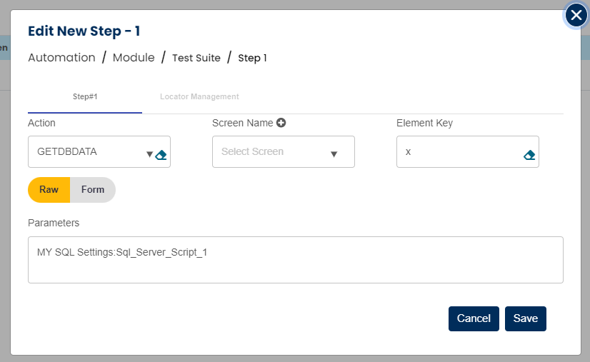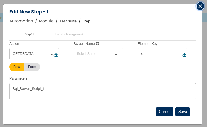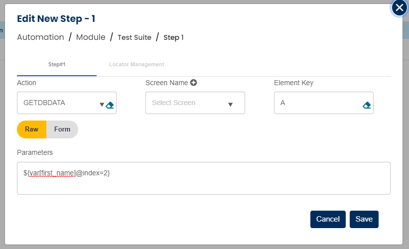 GETDBDATA is a command that can be selected from the Actions drop down list in the test step form. This command is used to fetch the entire row from the database table. It prevents multiple calls to the DB when we want to fetch the data from the same row of the table multiple times.