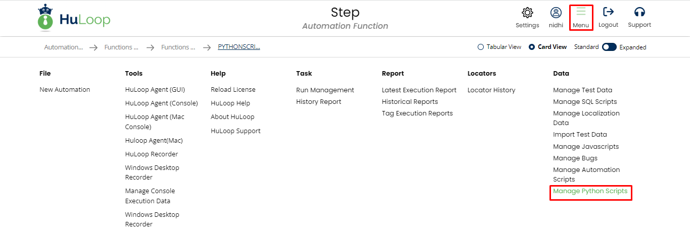 Firstly you need to write your python script under Menu > Data > Manage python scripts.