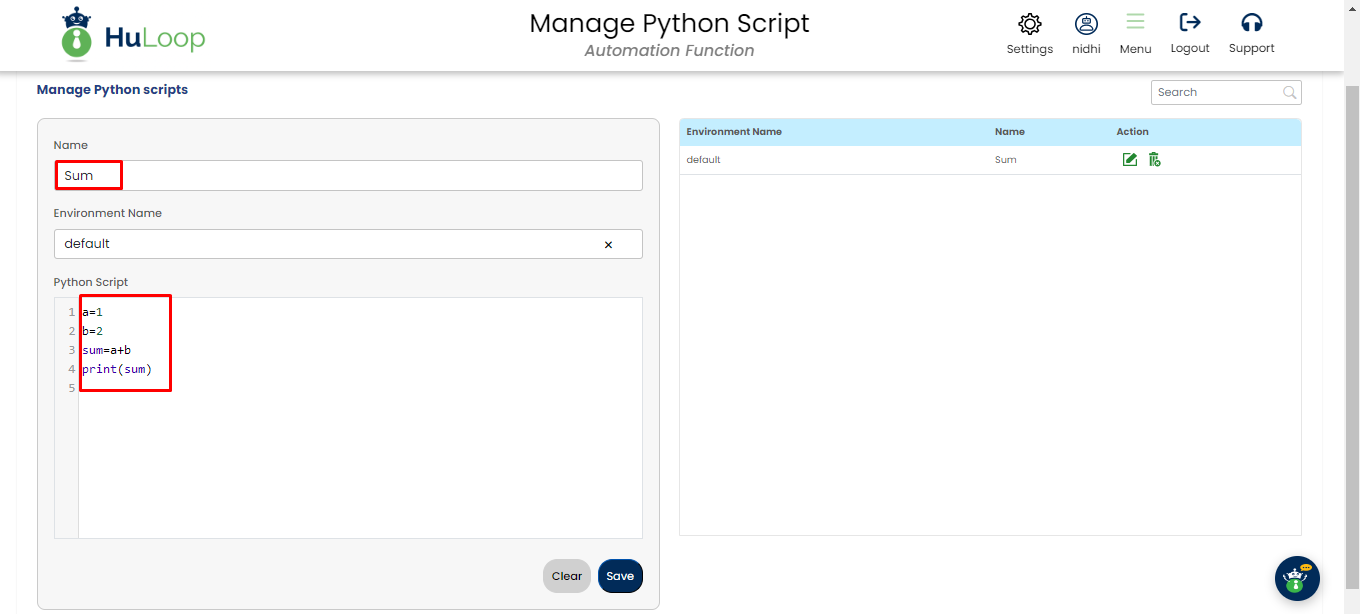 Note you have to use the name (as highlighted in the above snapshot)of the python script in your python script handler function.