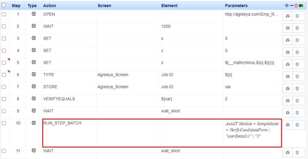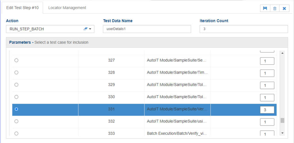 RunStepBatch command is used to execute given case with test data and execution iterations.