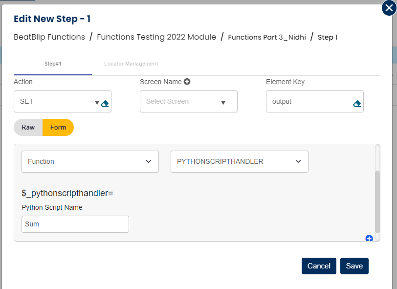 To use this Python script, you need to edit the step and click on form then select function and pythonscripthandler function from the drop down then write the created python script name and save the step.