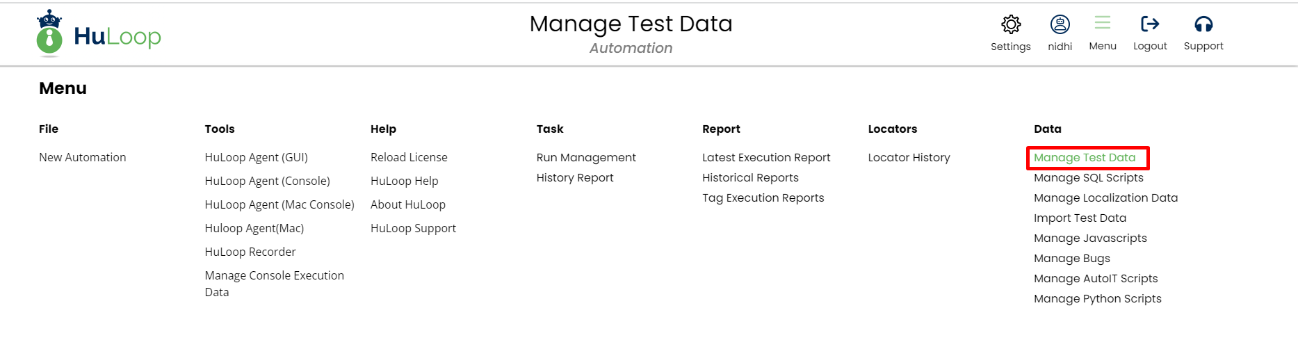 To create Test Data you need to select the automation then click on Menu, under Data section click on Manage Test Data.