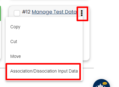 Card view : To associate data in card view, click on three dots on case then drop down will open, then click on Association/Dissociation Input Data button.