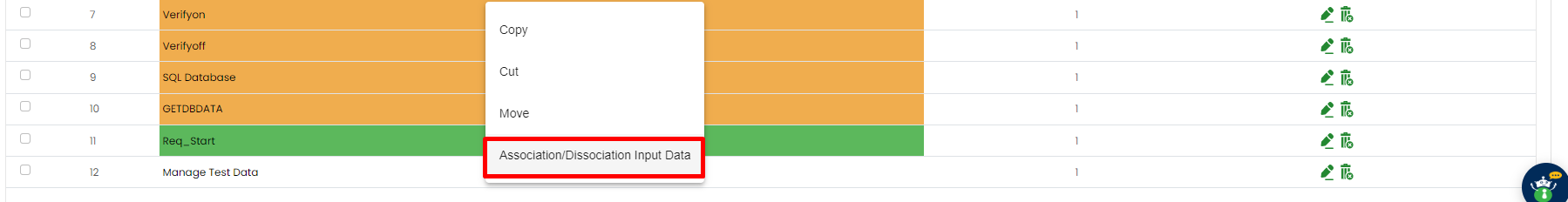 Tabular view : To associate data in tabular view, right click on case then drop down will open, then click on Association/Dissociation Input Data button.