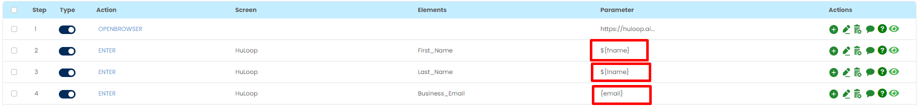 Use the test data variables in the parameter section of the scripts, so that we are accessible to the variables values.