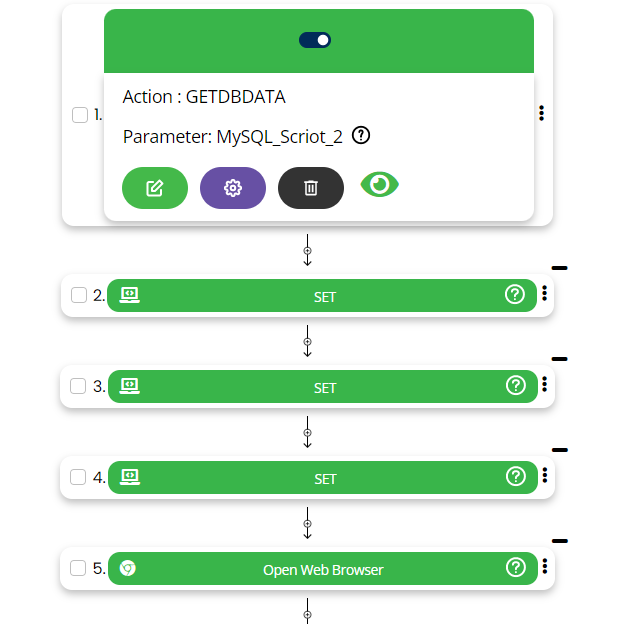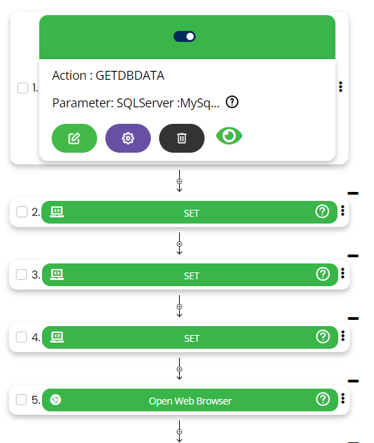 GETDBDATA is a command that can be selected from the Actions drop down list in the test step form. This command is used to fetch the entire row from the database table. It prevents multiple calls to the DB when we want to fetch the data from the same row of the table multiple times.