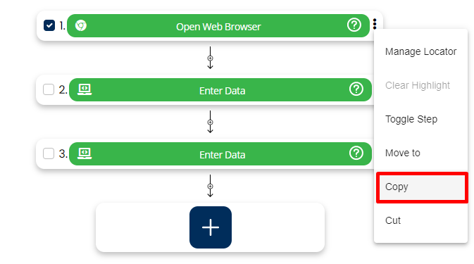 - Right click on the step and click on copy