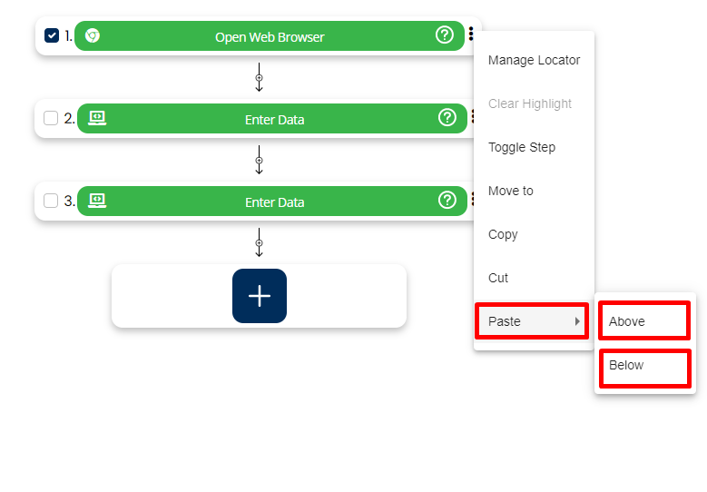 4. Now in order to paste this step, right click on the step above/below you want to paste the copied step and select paste option. It will again ask you to whether you want to paste the copied step above this step or below this step.