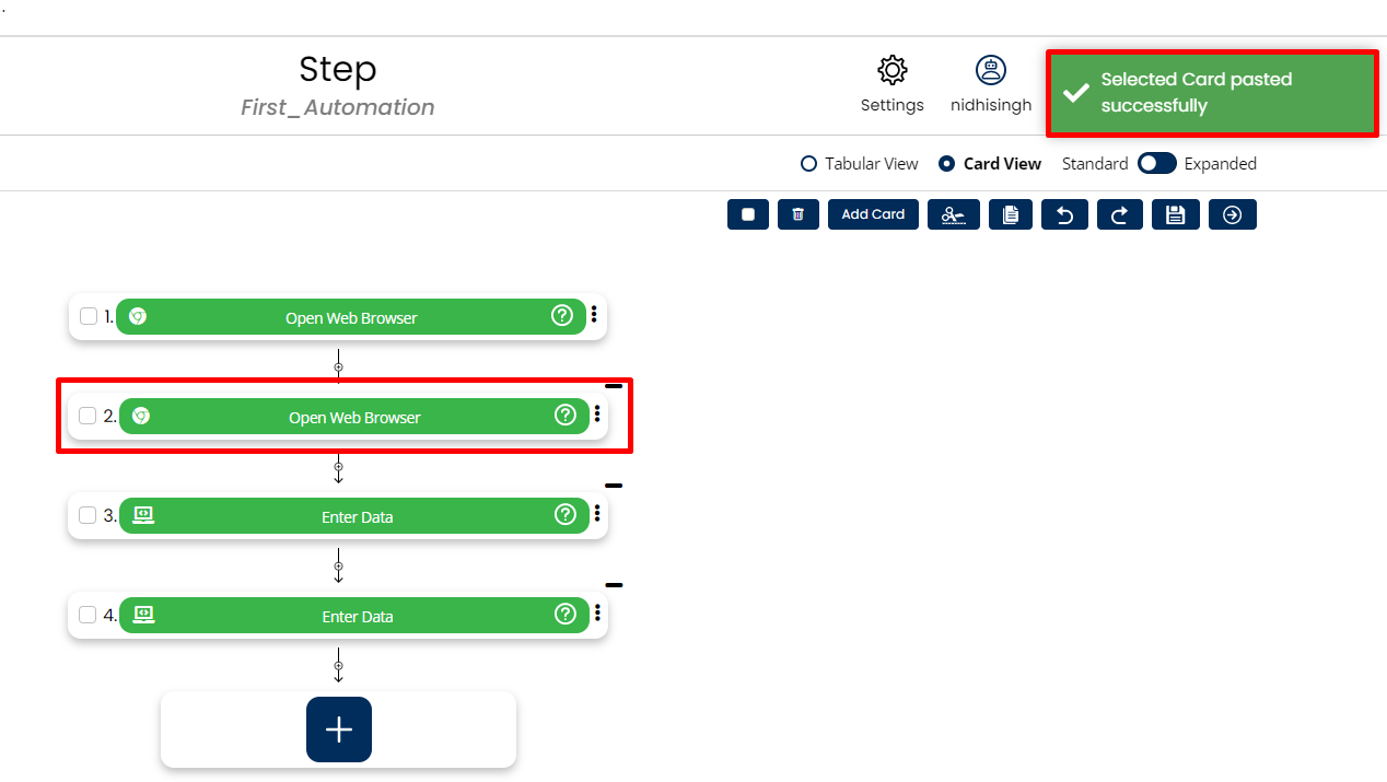 In the below snapshot card 1 was copied and pasted below card 1.
