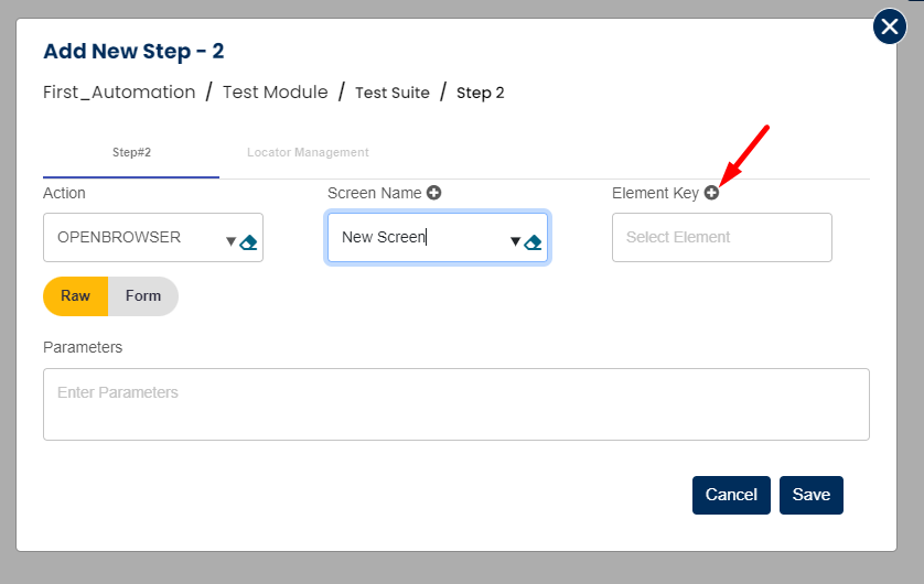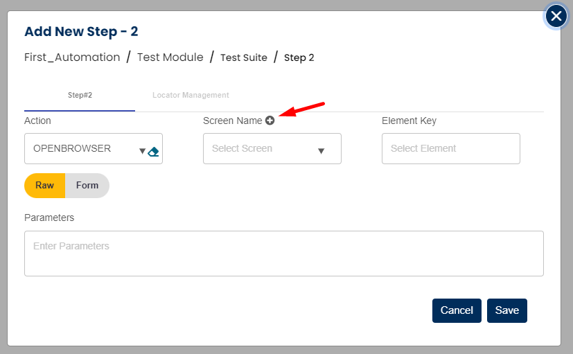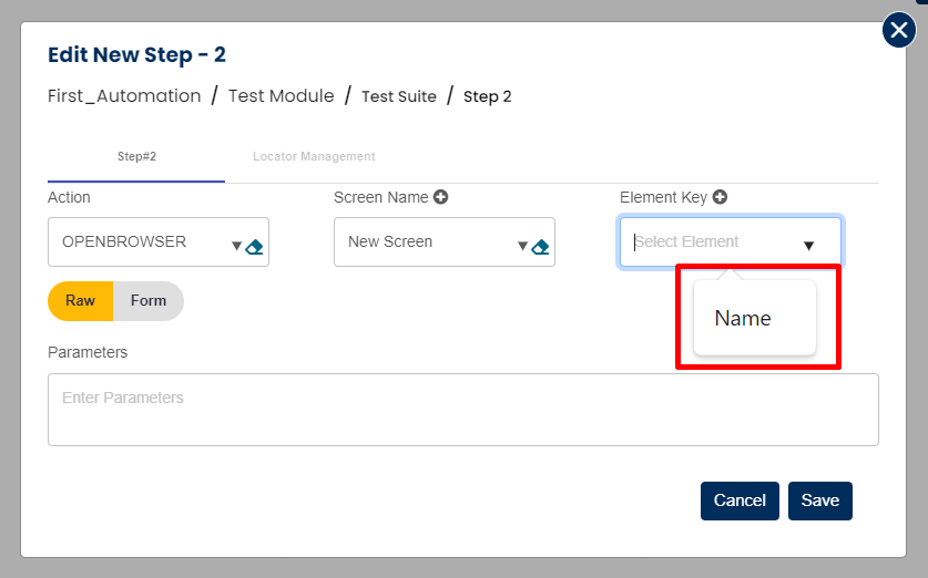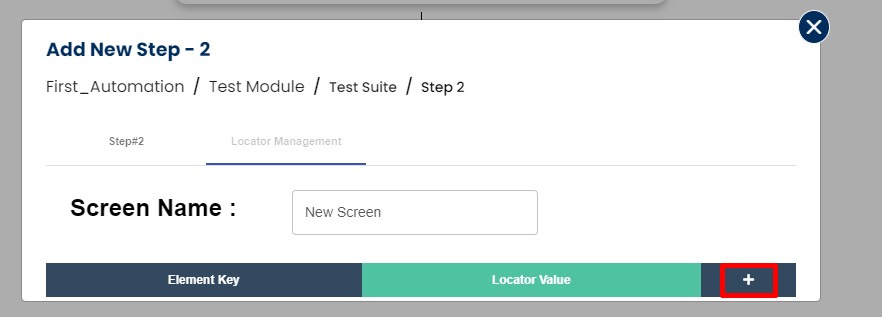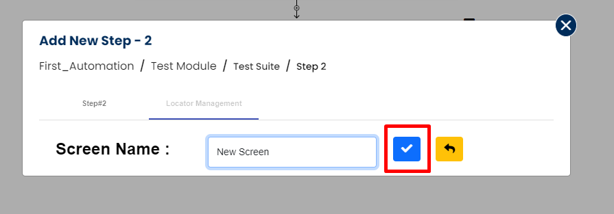 11. Once user is done with adding the locators, we have to navigate back to the steps screen from the tab highlighted below.