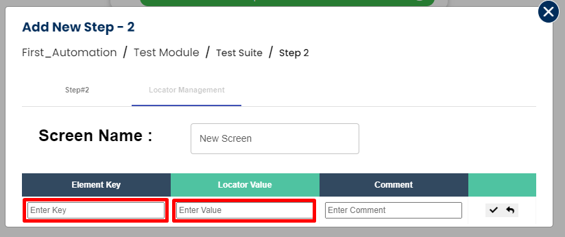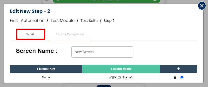 11. Once user is done with adding the locators, we have to navigate back to the steps screen from the tab highlighted below.
