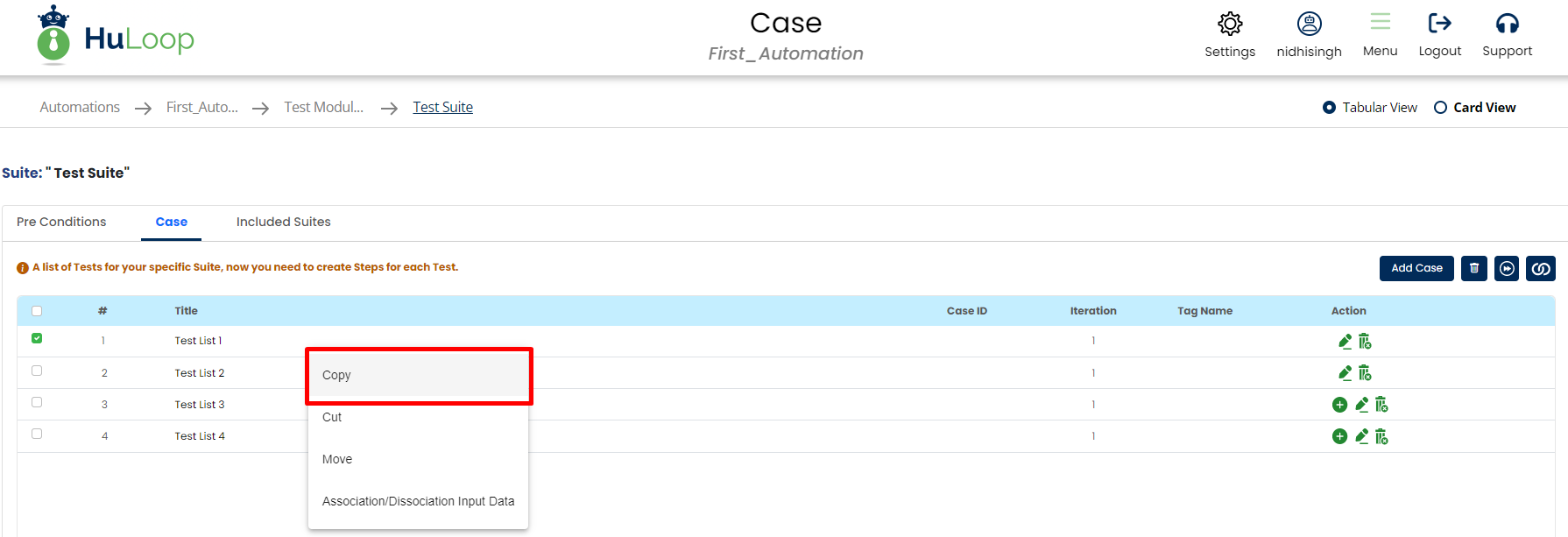 3. In order to paste the copied case right click on the suite from the automation where you want to paste this case