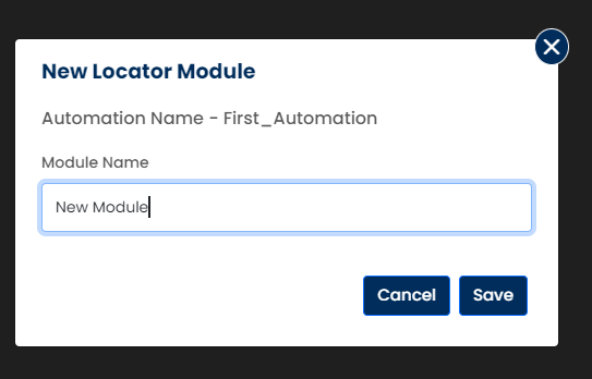 6. New Locator Module pop up will display, enter the name of module and save it.