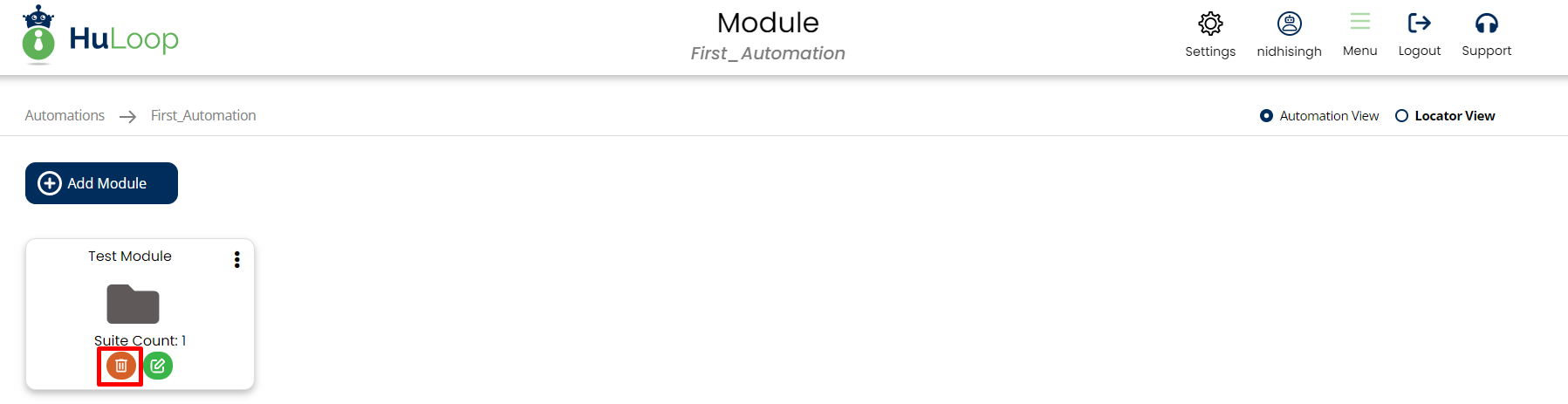 - A confirmation pop up will appear, click on Delete button to delete the specific module.