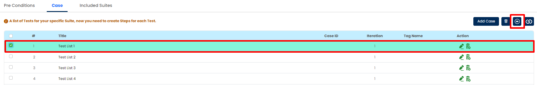 5. To unskip the step, select the checkboxes present before each case and click on skip/unskip case
