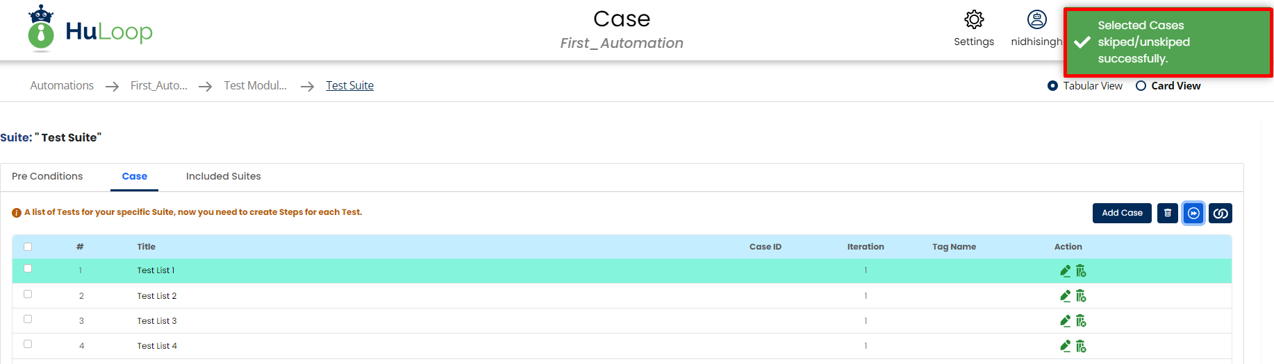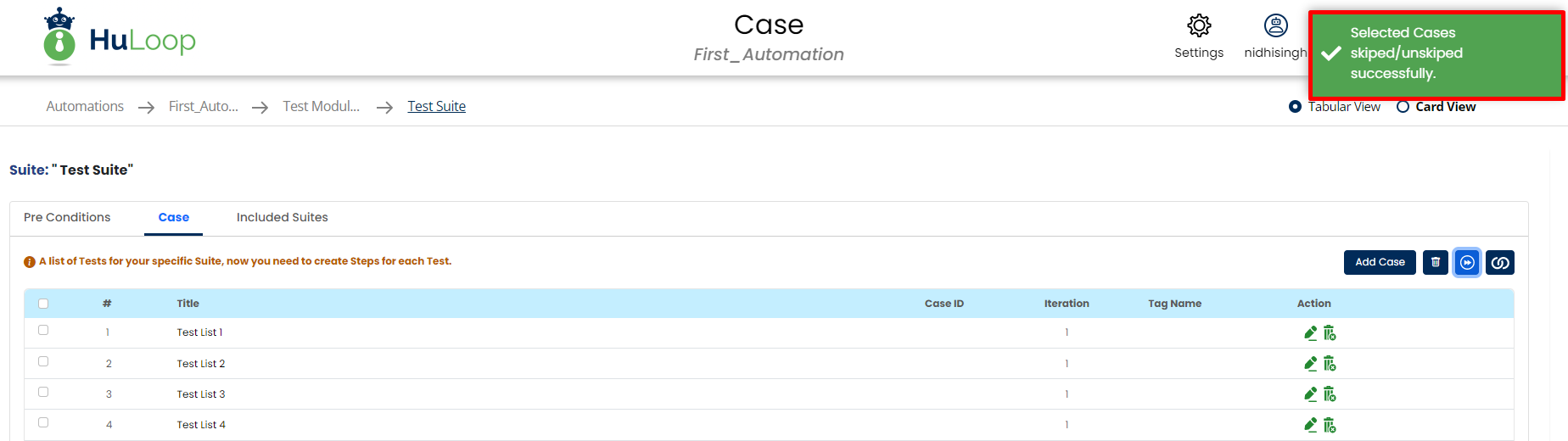 - Select the checkboxes present before each case and click on skip/unskip case button your case would be skipped.