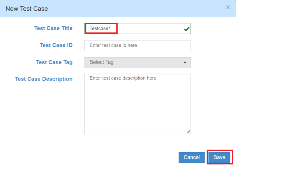 Enter test case title and other fields and click on save button.