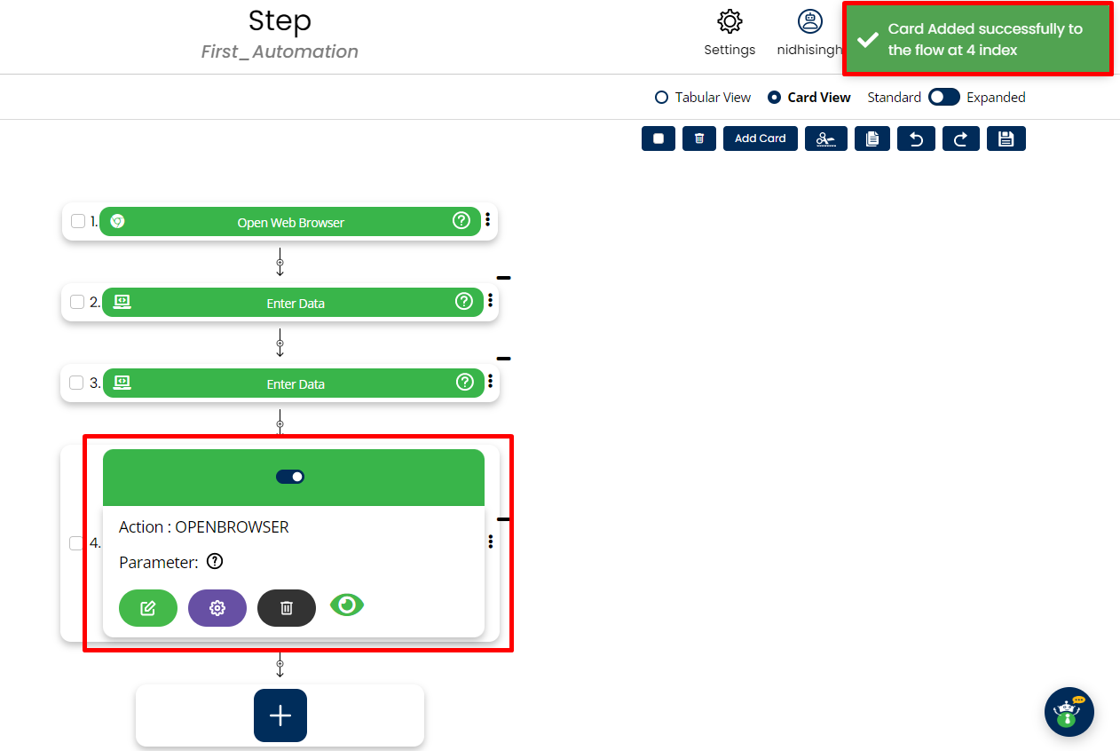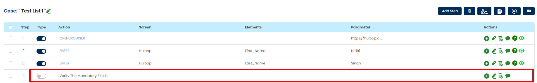Tabular view : If you click on third step ‘+’ Icon then the step would added to fourth step place.