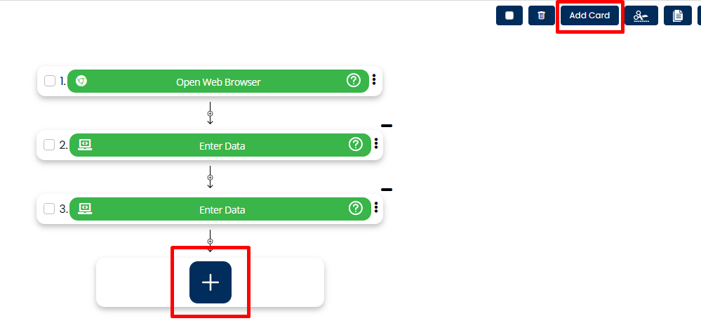 Card view : If you click on bottom ‘+’ icon button then the card would added at the last of all the cards