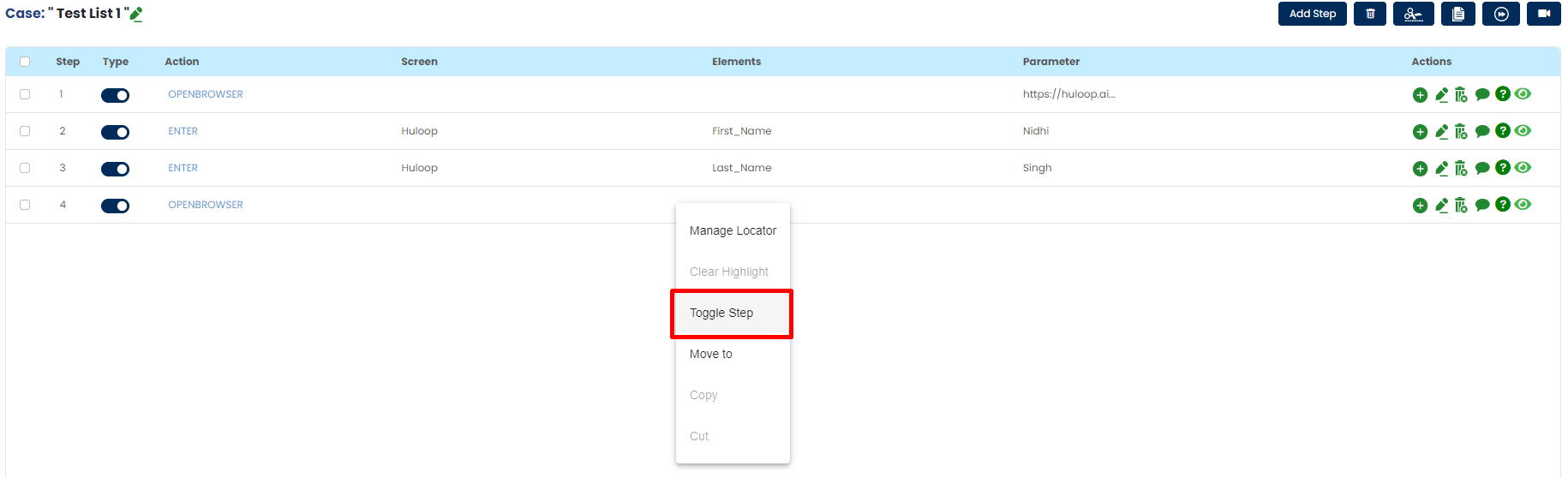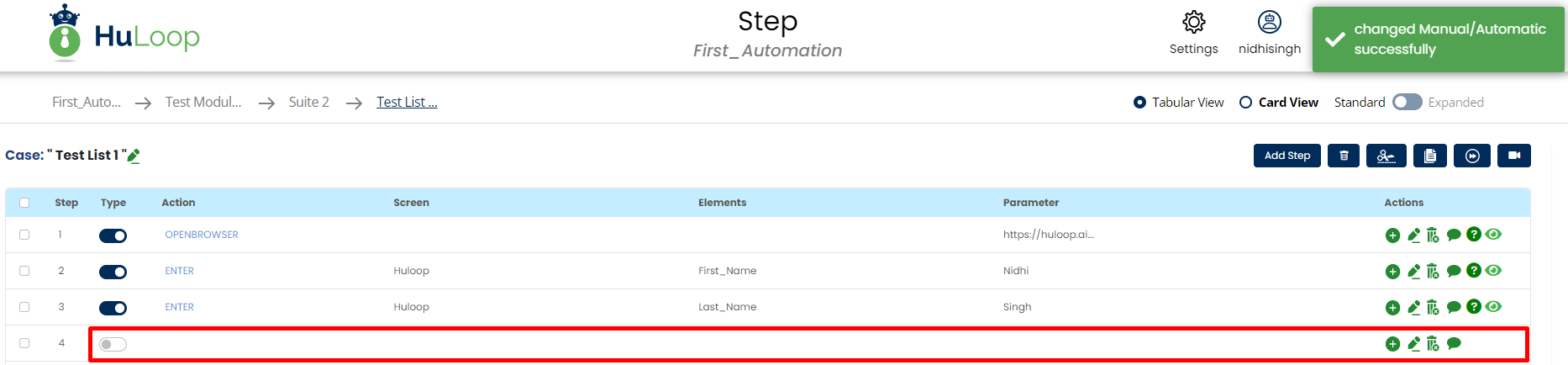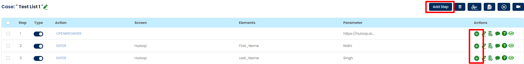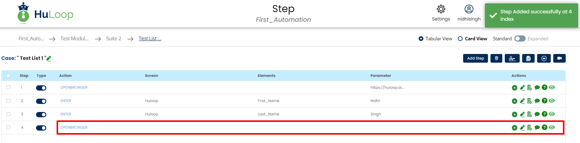 Tabular view : If you click on third step ‘+’ Icon then the step would added to fourth step place.