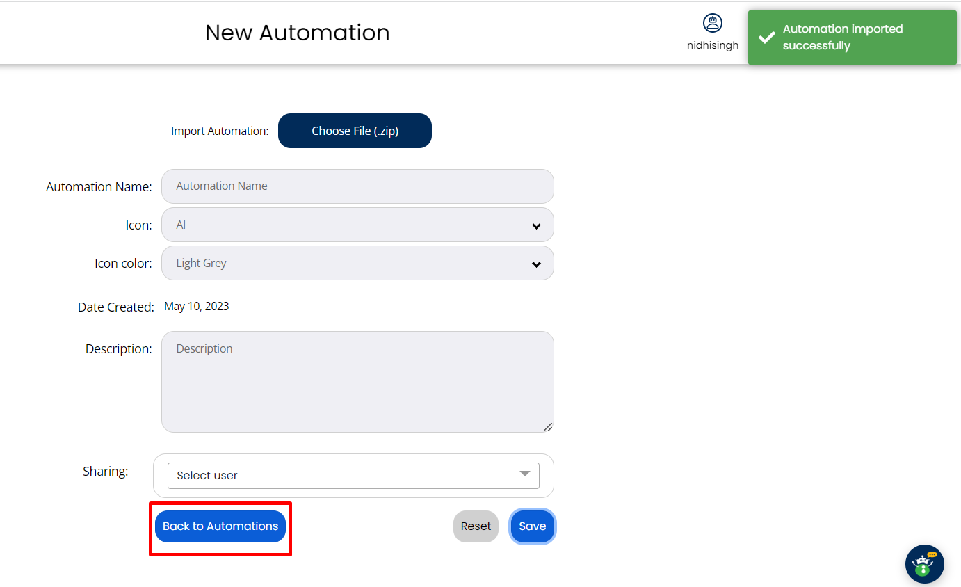 5. Your automation will get uploaded and can be seen when you click on Back to Automations button