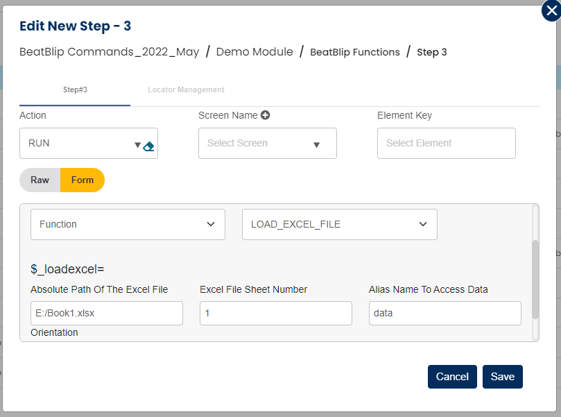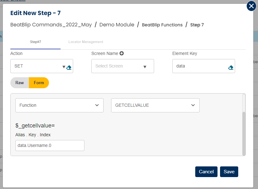 Step 2: Define a variable and use getcellvalue function to get the data from the excel sheet using alias name defined in step one.