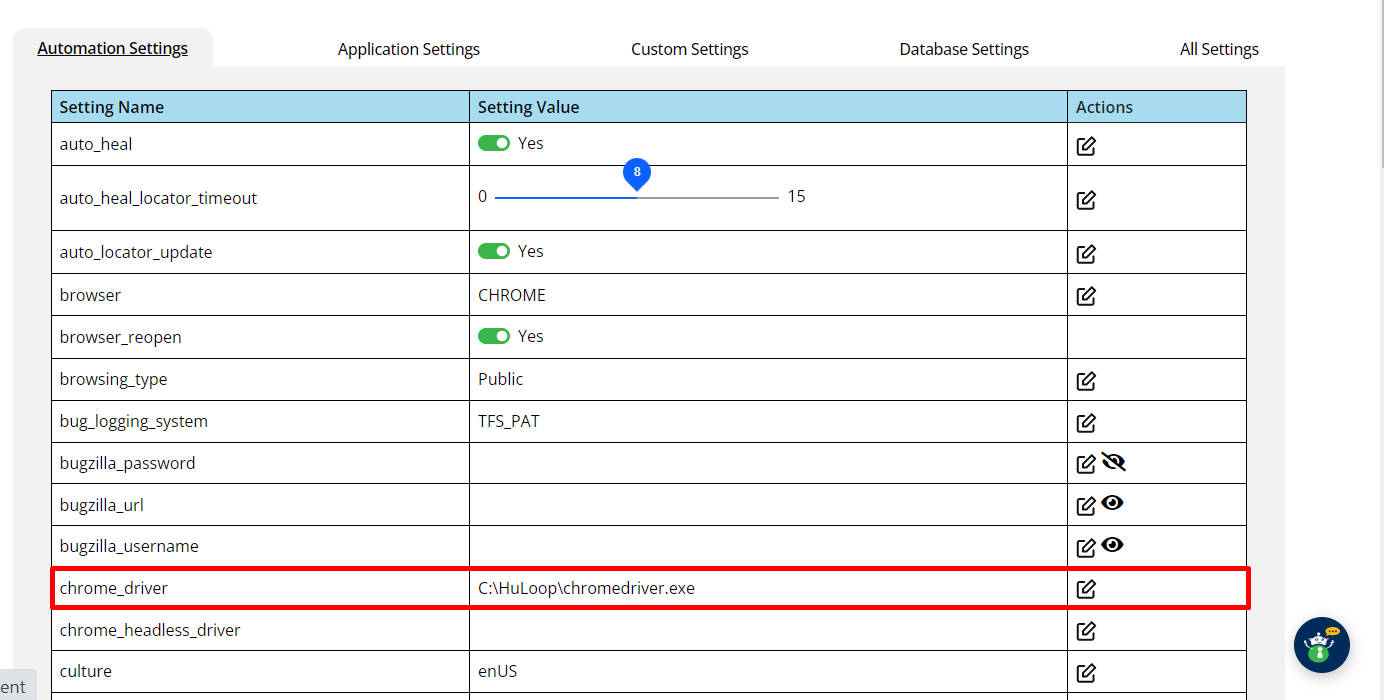 Step 5: Select your automation and go to Settings > Automation Settings > Automation Settings > chrome_driver and update the driver path