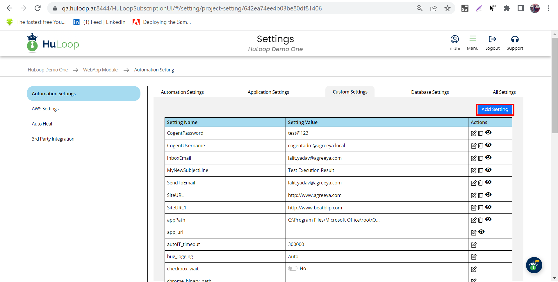 Apart from the pre defined variables user has the flexibility to create their own global variables in the Custom settings (Settings > Project Settings > Custom Settings).