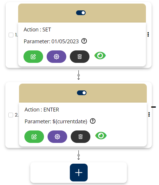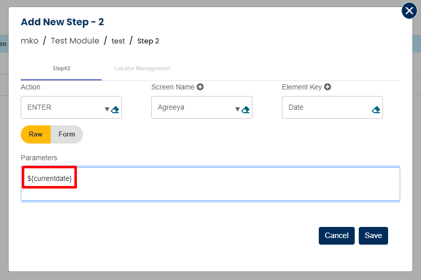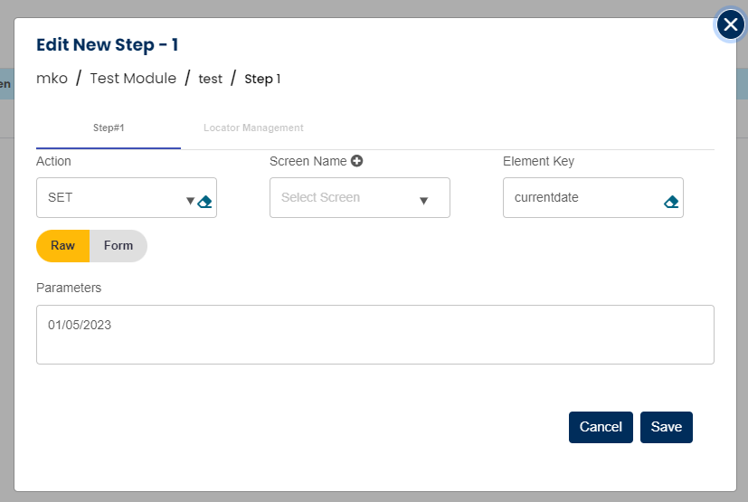 Action/command will be SET, screen name will be blank, variable name will go into Element and its value will go in the parameters as shown in step 2 in below snapshot.