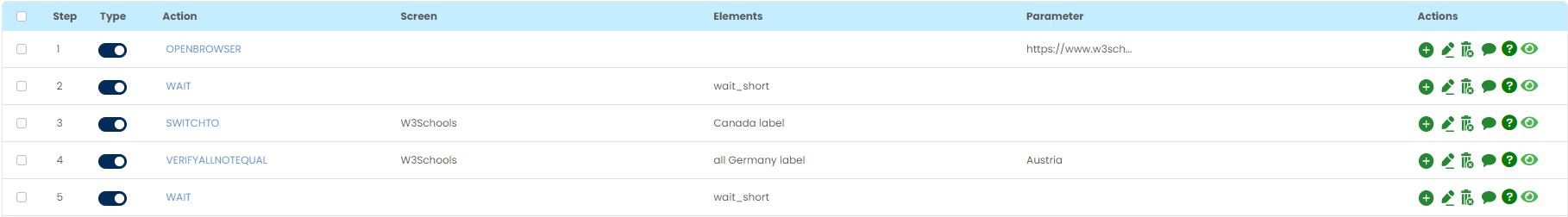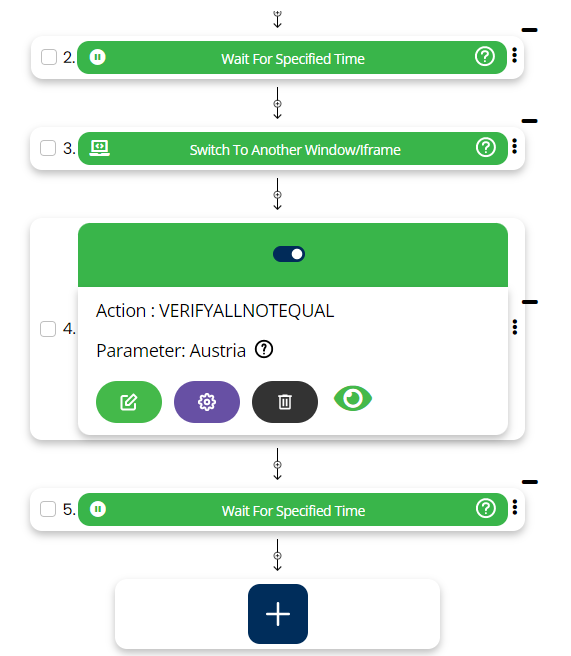 VerifyAllNotEqual command expects that all the locator(Page and Element) values available in a document does not match the value mentioned in the parameter section.