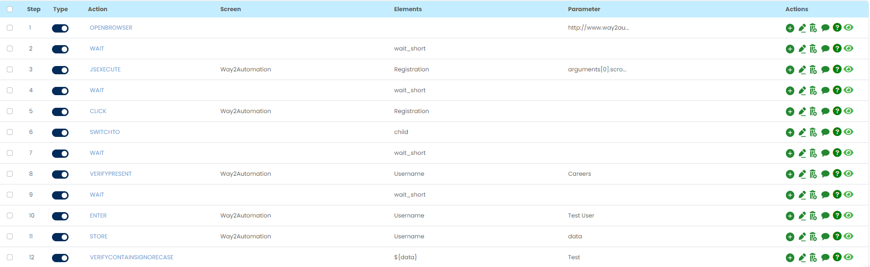 VerifyContainsIgnoreCase command is used to compare and verify the partial equality of two values ignoring their case sensitivity, text or integer. The left hand values is provided in element section and the right hand value is in parameter section. In case locator(page and element) is provided then the LHS will be the text value in the locator.