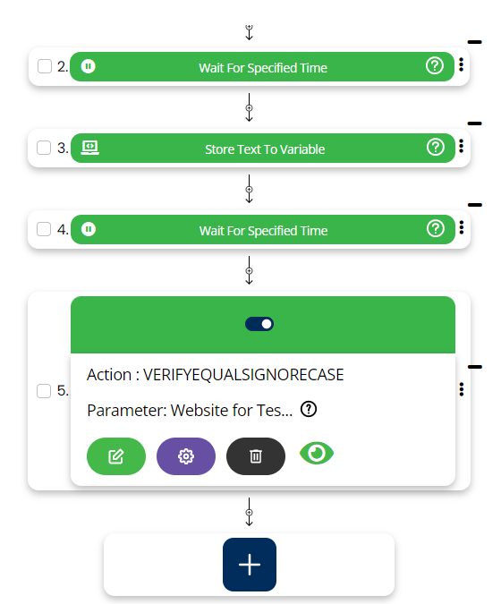 If first value ignoring the case sensitivity is equal to second value then this step will pass else this will fail.