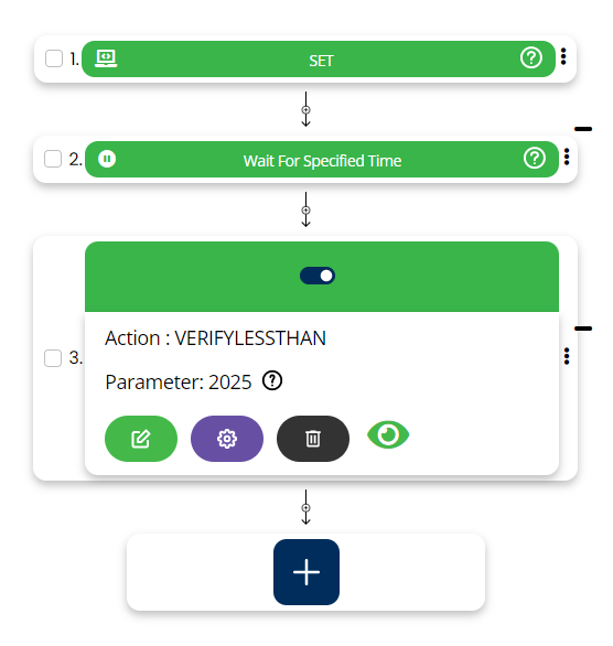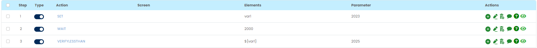In case we are comparing a value from a web element with another value in that case user has to select VERIFYLESSTHAN command from the action drop down, select desired Screen name, Element key and second value to compare in parameter section.